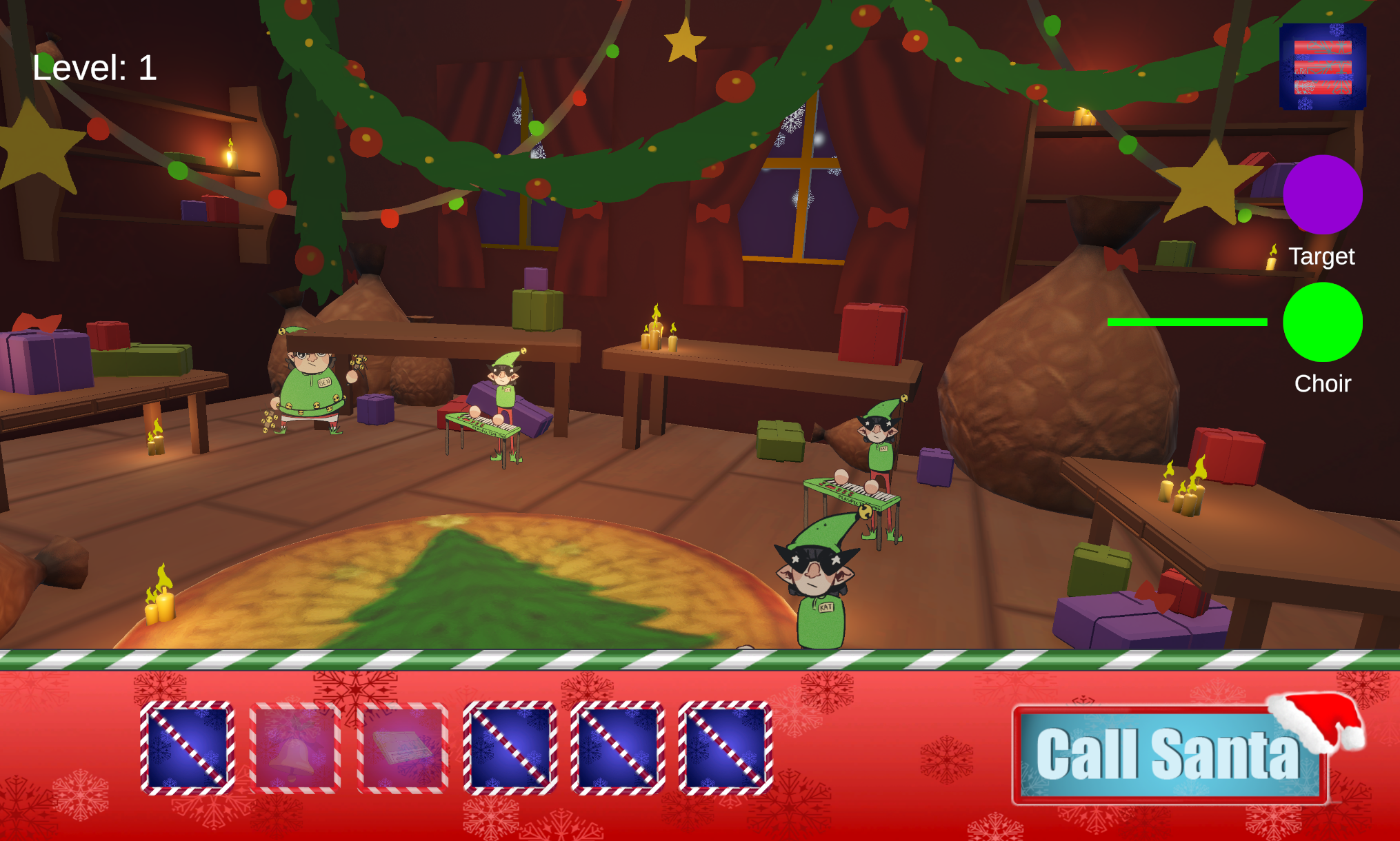 In this game, you are playing as some of Santa's elves. You are trying to make cool dj music to make him happy so that he will accept your holidays in the Bahamas!!